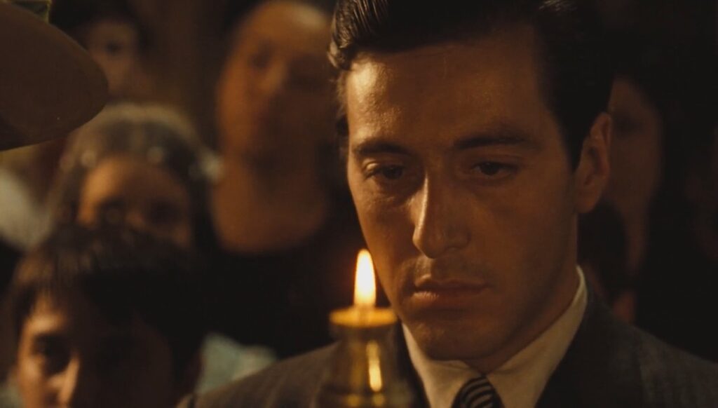 When we first meet Michael, he is the good son. He sits at his sister’s wedding in his army uniform, he holds his girlfriend Kay’s hand, and he tells her clearly — “That’s my family, Kay. It’s not me.” He genuinely believes this. And so do we. What Pacino does brilliantly is make the transformation feel completely believable. Michael does not suddenly become a different person. He makes a series of choices, each one logical given his circumstances, and by the time you realise what he has become, you have been watching it happen so gradually that it does not feel like a shock. It feels inevitable.