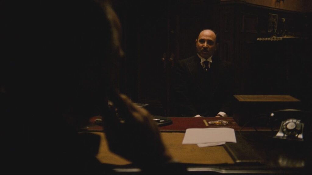 Gordon Willis shot this film and earned the nickname “The Prince of Darkness” for his work here. As a photographer myself, I find Willis’s approach to The Godfather absolutely fascinating. He made deliberate choices that went against every conventional rule of filmmaking at the time. The most striking of these is how he lit Marlon Brando in the opening scene. Vito Corleone sits in near total shadow during the wedding, his face barely visible, light catching only certain angles. Studio executives were horrified when they saw the rushes — they thought the film was underexposed and Willis had made a catastrophic error. But Coppola trusted him. And the result is one of the most iconic pieces of lighting in film history. The darkness around Vito communicates power, mystery, and danger without a single line of dialogue.