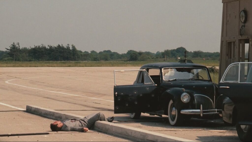 The most photographically striking moment for me is the wide shot of Sonny\’s body at the tollbooth. The camera holds its distance, showing a man of enormous presence lying small against the vast empty space of the toll plaza. The bullet-riddled car beside him, the open sky above — it is a masterpiece of scale and perspective, using negative space to communicate the devastating cost of impulsiveness.