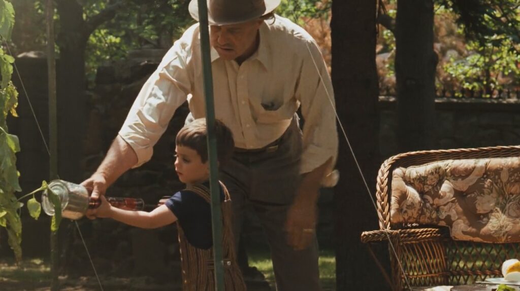 The scene that stayed with me the longest is when Vito is in the garden near the end of the film, playing with his young grandson, eating oranges, just being an old man enjoying a quiet afternoon. There is something profoundly human about it. This man who has ordered deaths and shaped criminal empires is at his most peaceful doing something completely ordinary. Brando communicates a lifetime of complexity without saying a single word in that moment. It is extraordinary acting.