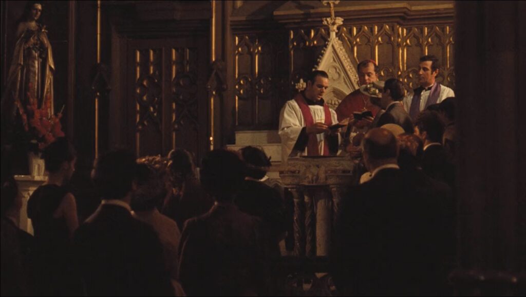 Willis also used warm amber tones throughout the Corleone household scenes — golden, almost nostalgic light that makes the family feel close and intimate. Then in contrast, scenes outside the family’s world are cooler and harsher. It is a visual language that separates the warmth of family from the coldness of the world they inhabit.